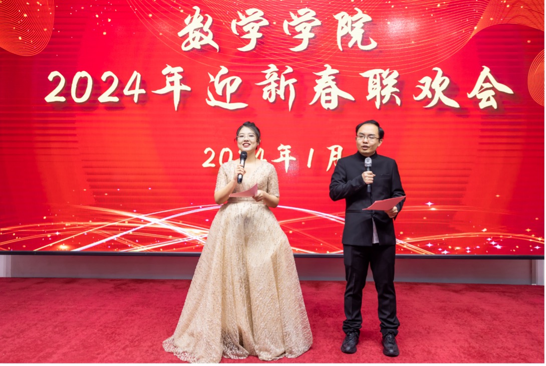 玉兔辞旧岁,瑞龙迎新春。1月10日下午,韩国三级片 “2024年迎新春联欢会”在韩国三级片 友谊会馆隆重举行。学院全体教职工欢聚一堂,共贺新春,共展宏图。本次联欢会由计算数学系吴畏和基础数学系侯帅两位老师主持。