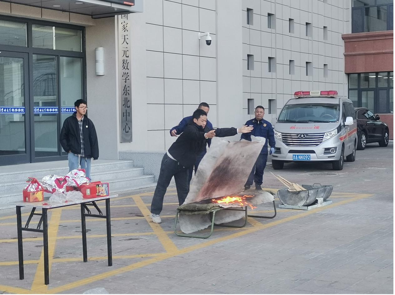 随即在保卫处工作人员的组织下,全体师生开展了应急疏散演练活动,整个应急疏散演练活动以数学楼内突发火情为背景,全景演练了突发火情后全楼师生紧急疏散撤离、消防队员灭火等流程。董立明老师还就干粉灭火器、二氧化碳灭火器、灭火毯的灭火特点、日常维护及使用操作中应注意的问题做了详细的说明,并现场指导部分师生进行灭火实操演练。演练过程中,全院师生展现了快速反应的能力,演练达到了预期的目标。