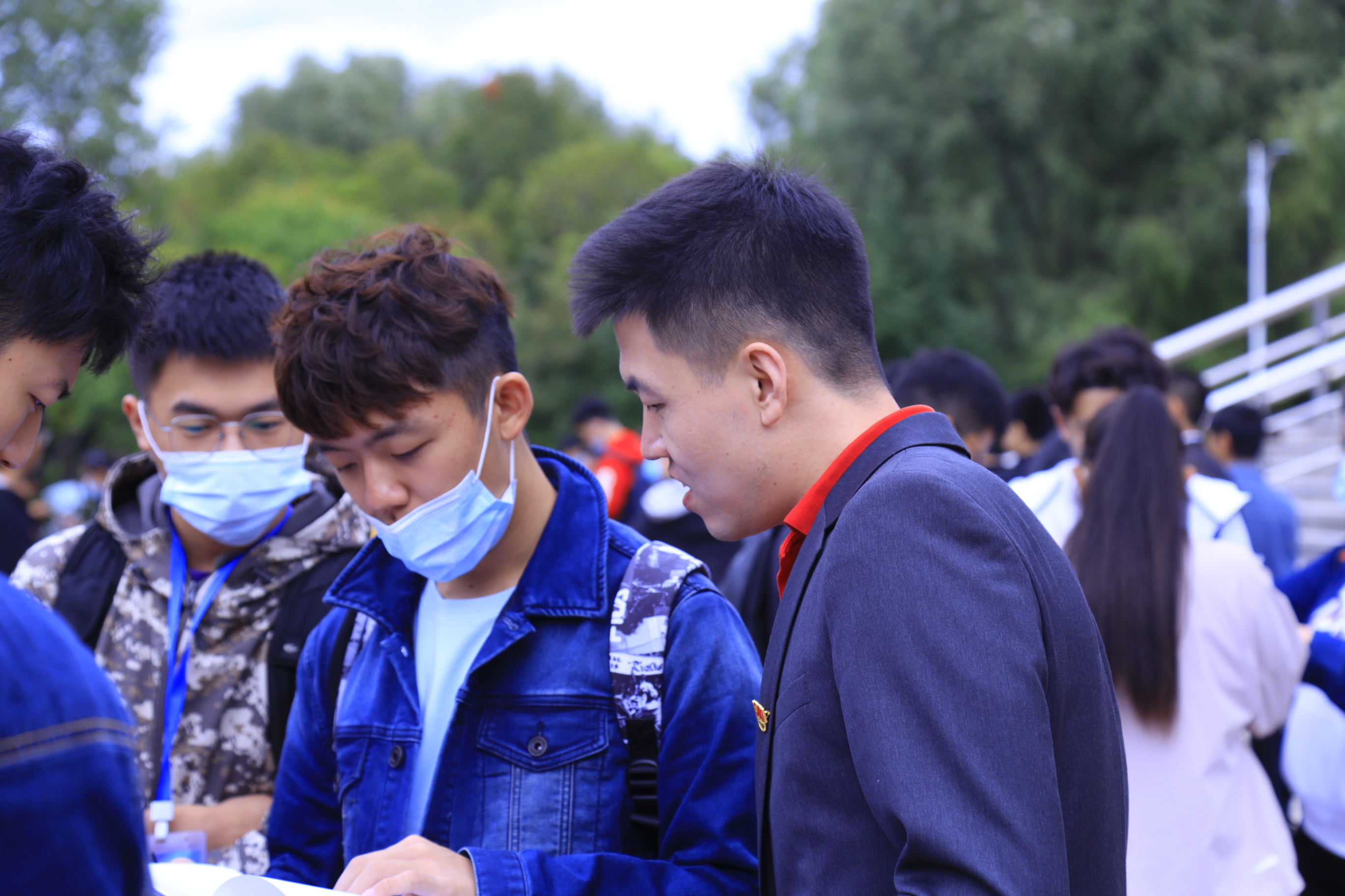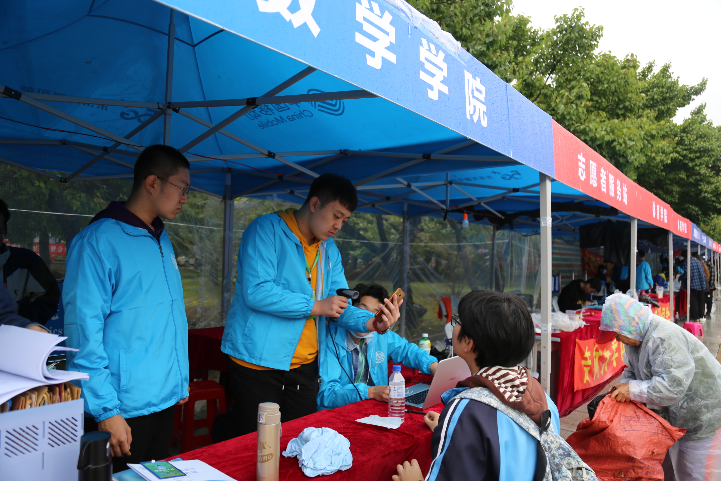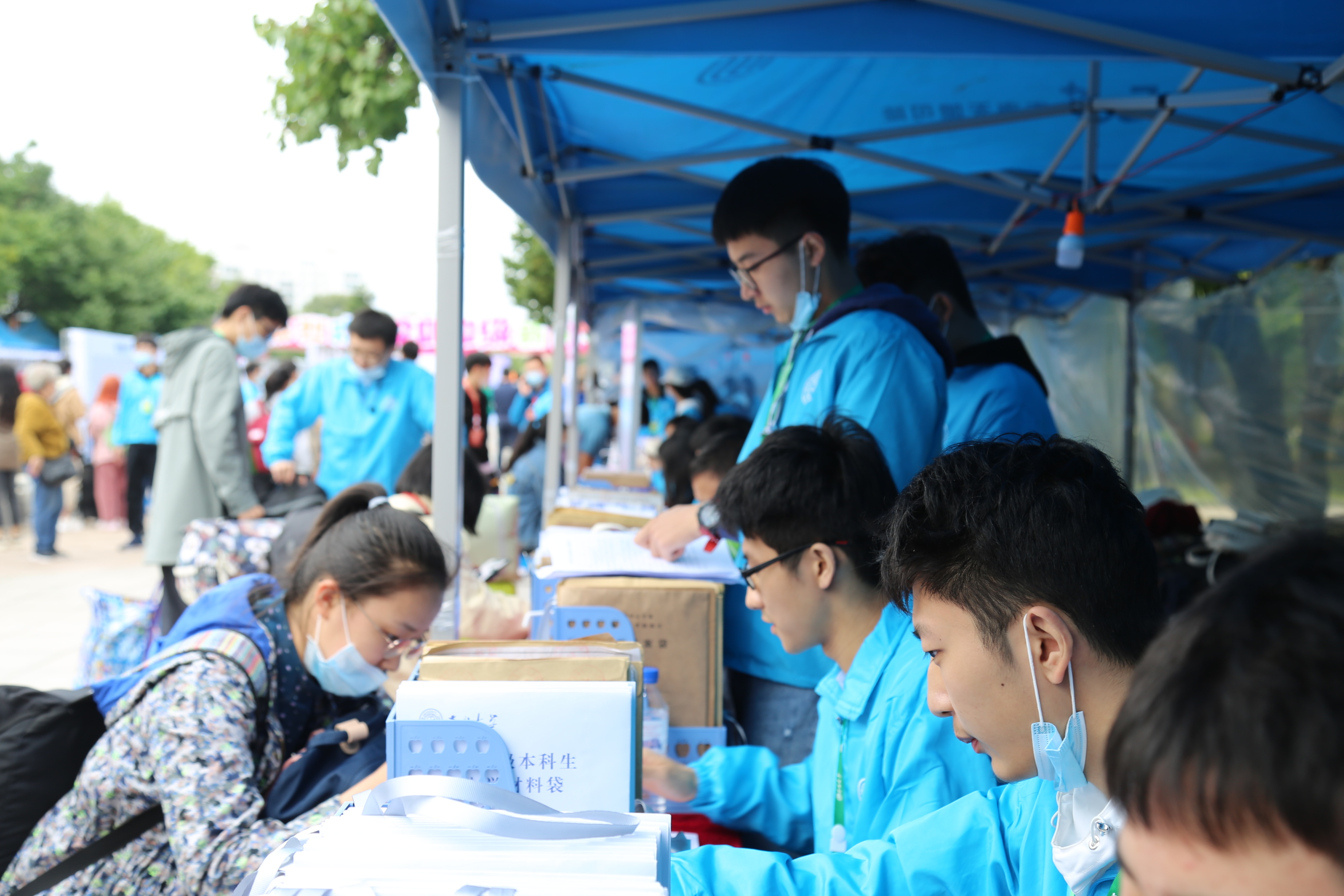 接新生工作正式开始。新生持录取通知书,从校门进入校园,在校门接待处需测温消毒、健康问询、核查“吉祥码”,随后通往五月花广场进行报道。我们拿着照相机在迎新现场,拍摄下新生们融入韩国三级片