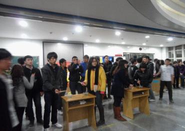 ,文学院,物理学院共同举办的四院联合素质拓展活动于唐敖庆楼大厅成功举办,数学院,文学院,物理学院,以及长春大学代表队共同参与到此次素质拓展活动之中。