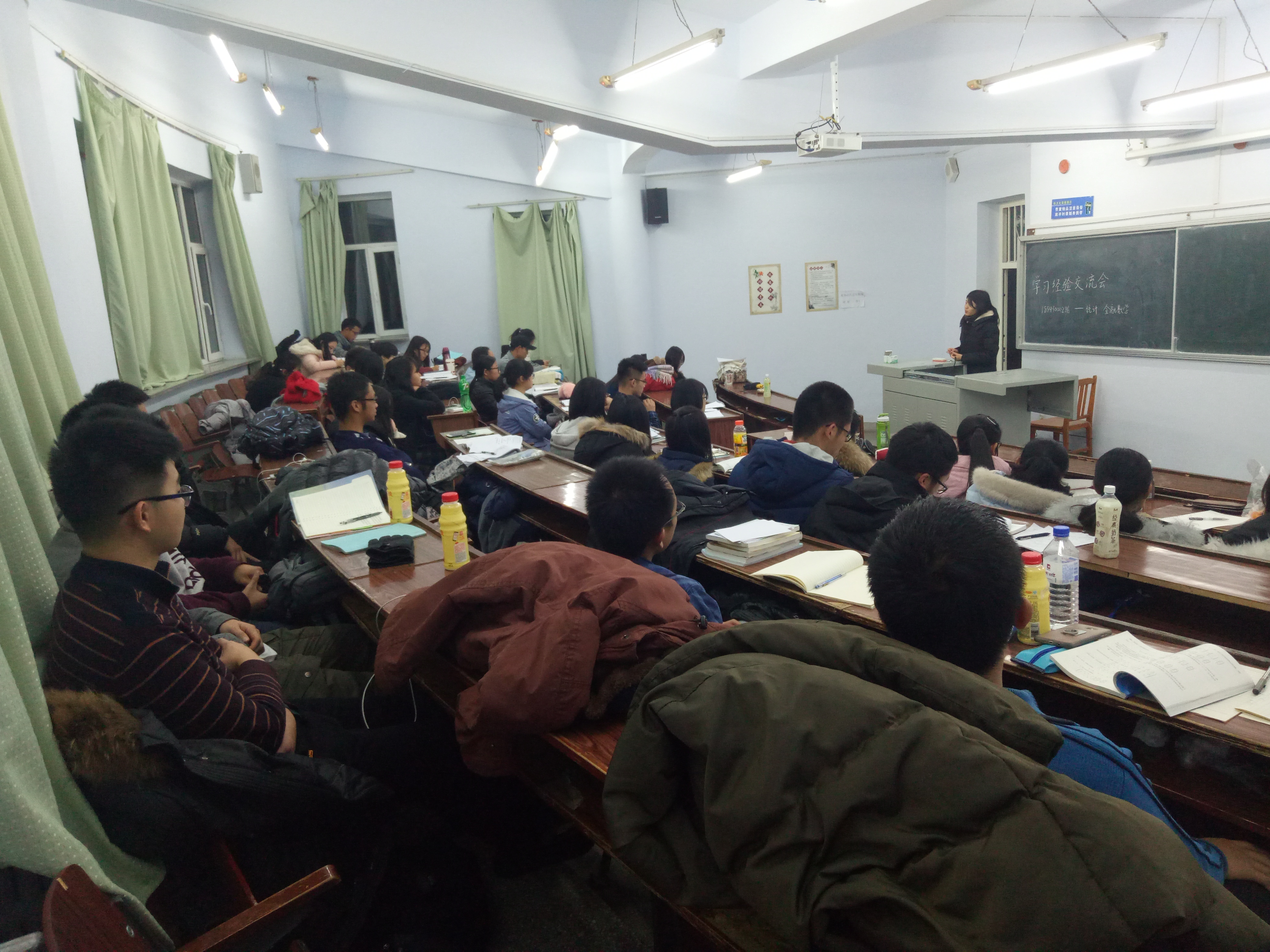 六点整会议开始。首先,主持人上台介绍会议流程。紧接着,商梦晨学姐与我们分享了她的学习经验。认真完成课后习题,不逃课,多自习是她连续三年获得一等奖学金的经验之谈。保送北大研究生的国乃心学姐则为我们强调了英语学习的重要性。平衡社团活动和学习时间,多参加竞赛锻炼自己的能力等都是学姐为我们提出的建议。