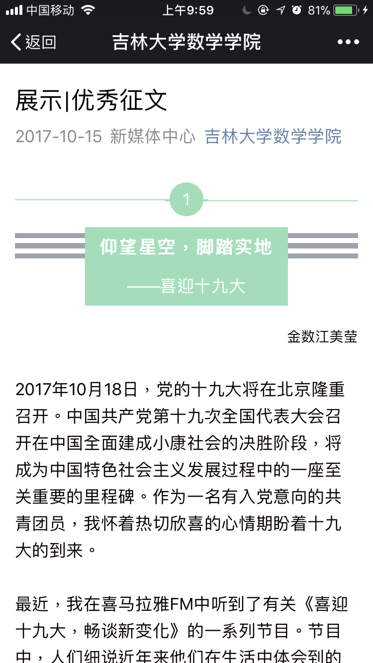 团委社会实践部于九月二十九日至十月九日举办了“青春喜迎十九大 不忘初心跟党走”主题征文活动。
