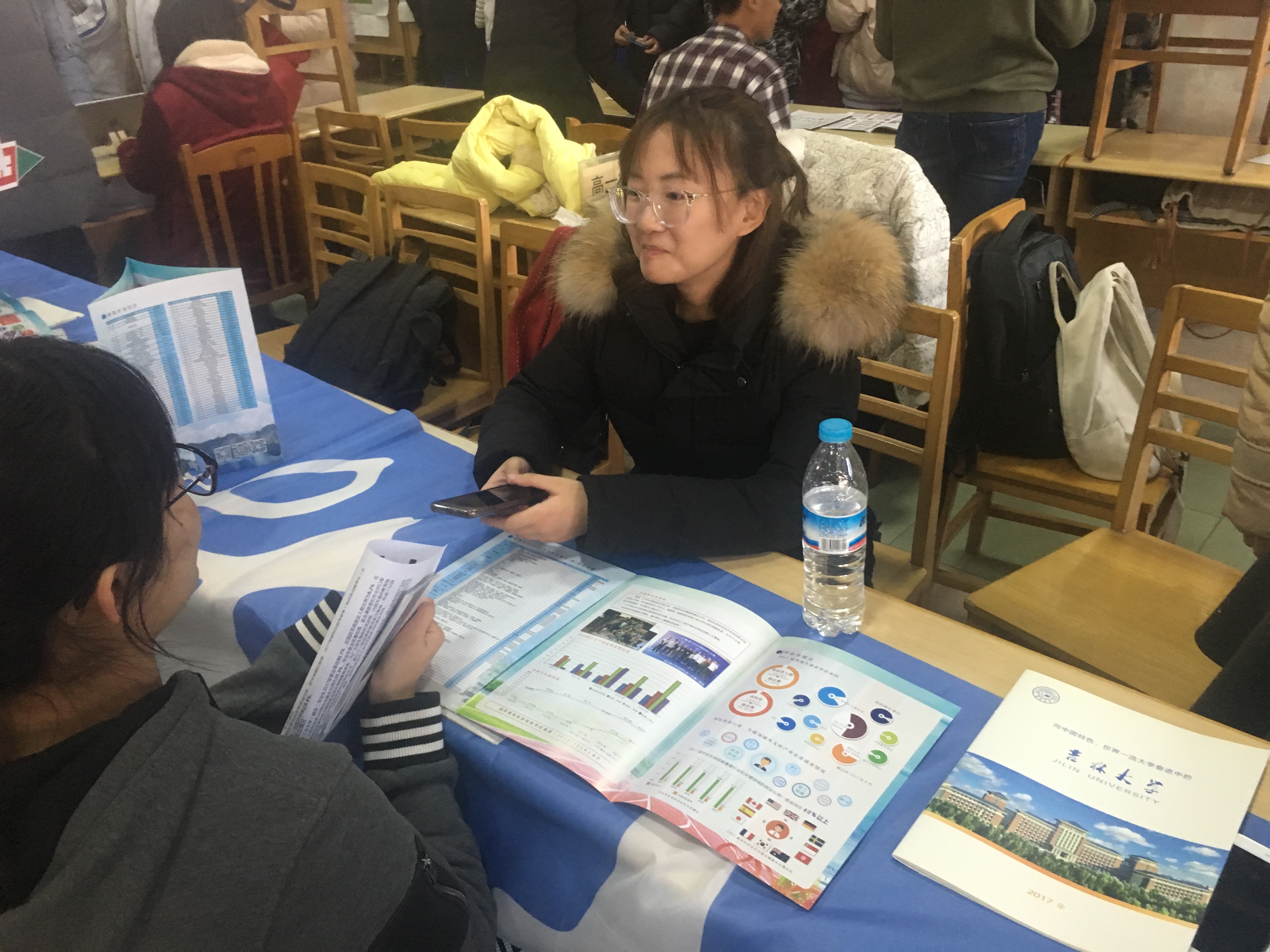 的魅力。同时也锻炼了宣讲同学的表达能力与交际能力。赵欣仪小组在山东省实验中学宣讲的主要形式是在校内设立摊点(自摆凳子桌椅等)进行宣讲,摆摊时间在2月5日下午一点半正式开始,在山东省实验中学东校书苑进行。发放宣传册给学弟学妹,并跟他们交流我们这一年半在学校的亲身经历,吉大,双一流的学校;数学,双一流的学科,对此进行了有针对性的主推。