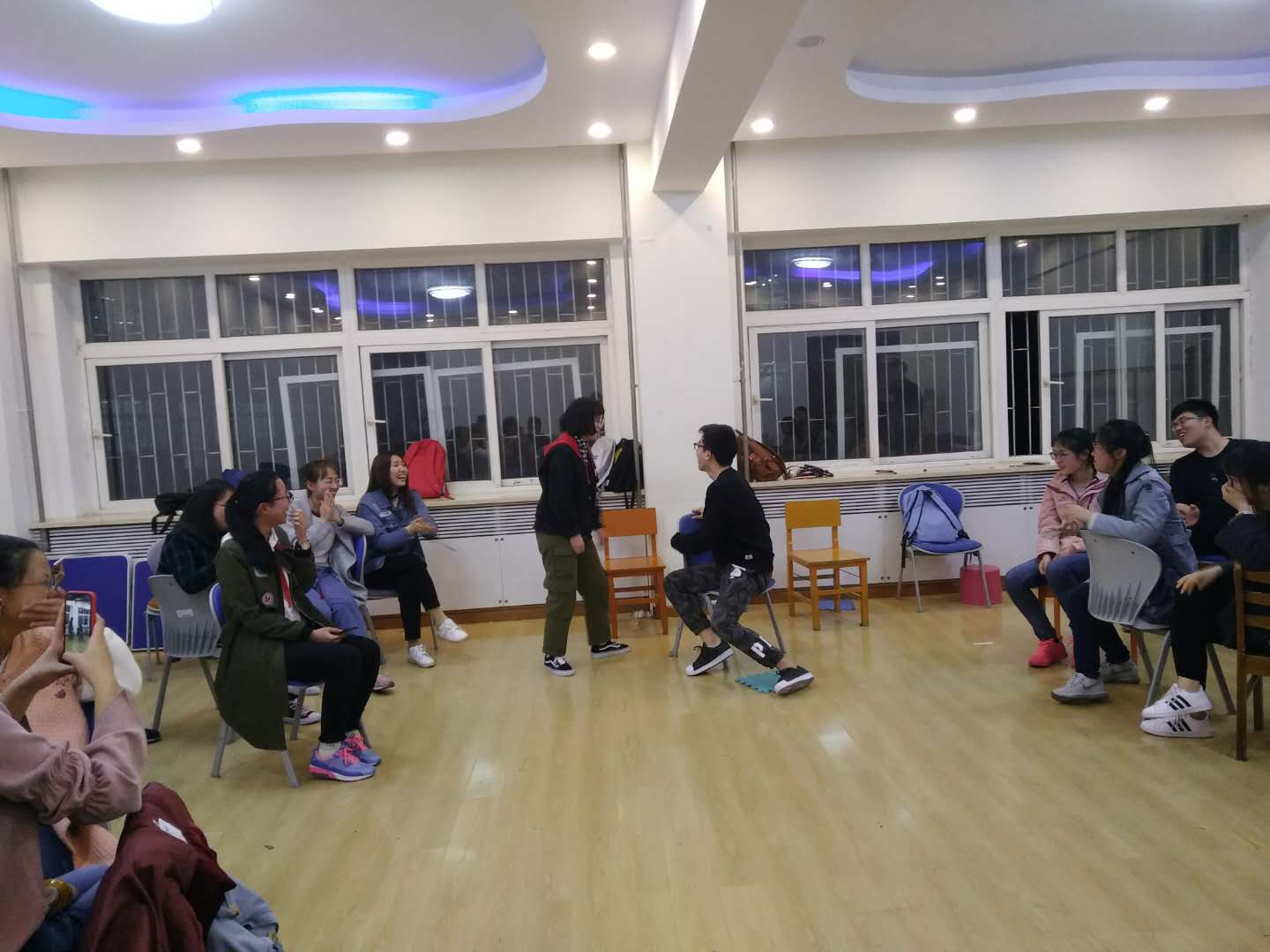 本次活动分为两个环节。第一个环节叫做情绪卡:我们先将同学们分为四组,每组出一人抽选一张写着情绪的卡片,然后准备好后将情绪通过自己的面目表情与肢体语言表现出来,让其他同学猜测。在这个环节中每个表演的同学尽自己所能,用表情和动作展现出自己对这种情绪的理解;第二个环节是猜歌名:每组两个同学进行表演,其他同学猜歌名;第三个环节是情景剧表演:同学们选择两个关键词,然后分组进行表演,分享彼此的心得。最后合影纪念下本次有趣的心理班会。