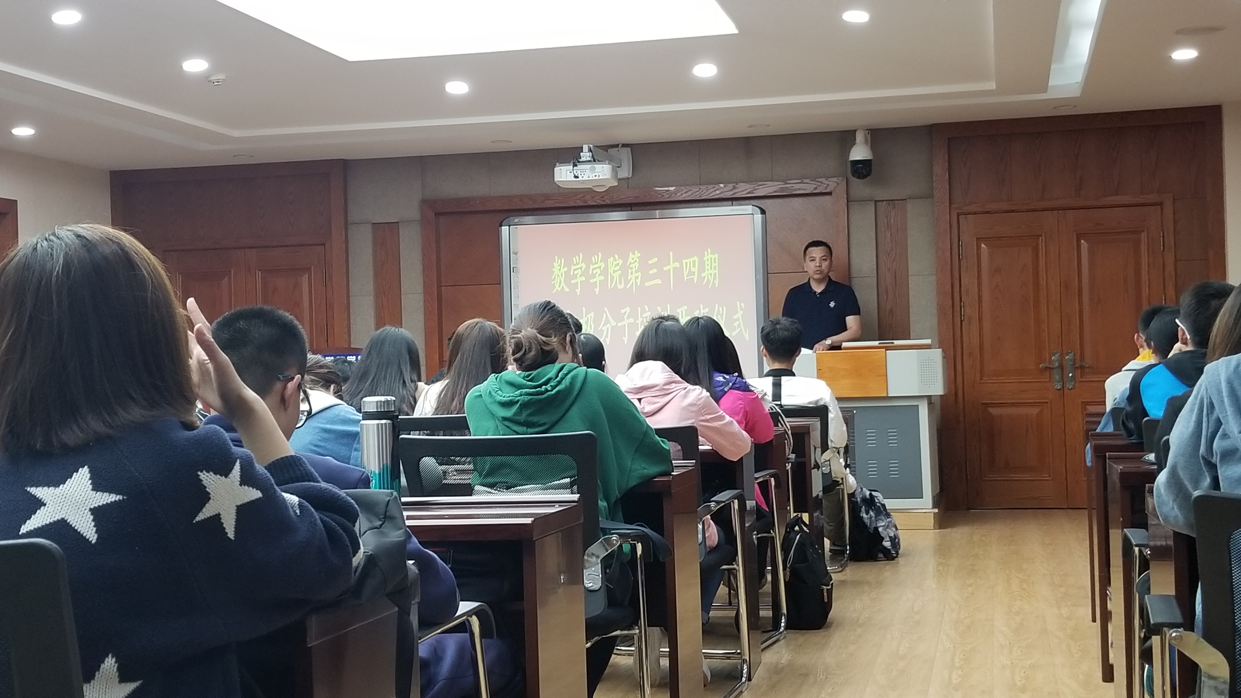于5月28日晚六点在数学楼一楼报告厅举办了第三十四期入党积极分子开班仪式。