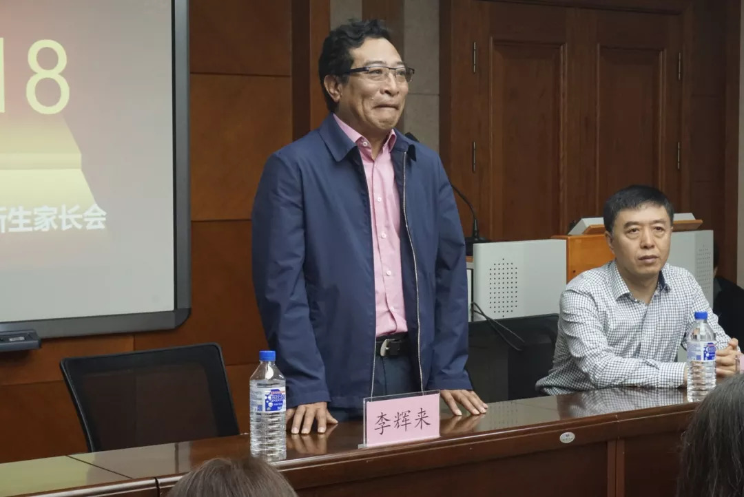 院长李辉来老师、党委书记李晓光老师、党委副书记兼副院长范庆文老师、18级辅导员曹馨月老师和18级的新生家长们。