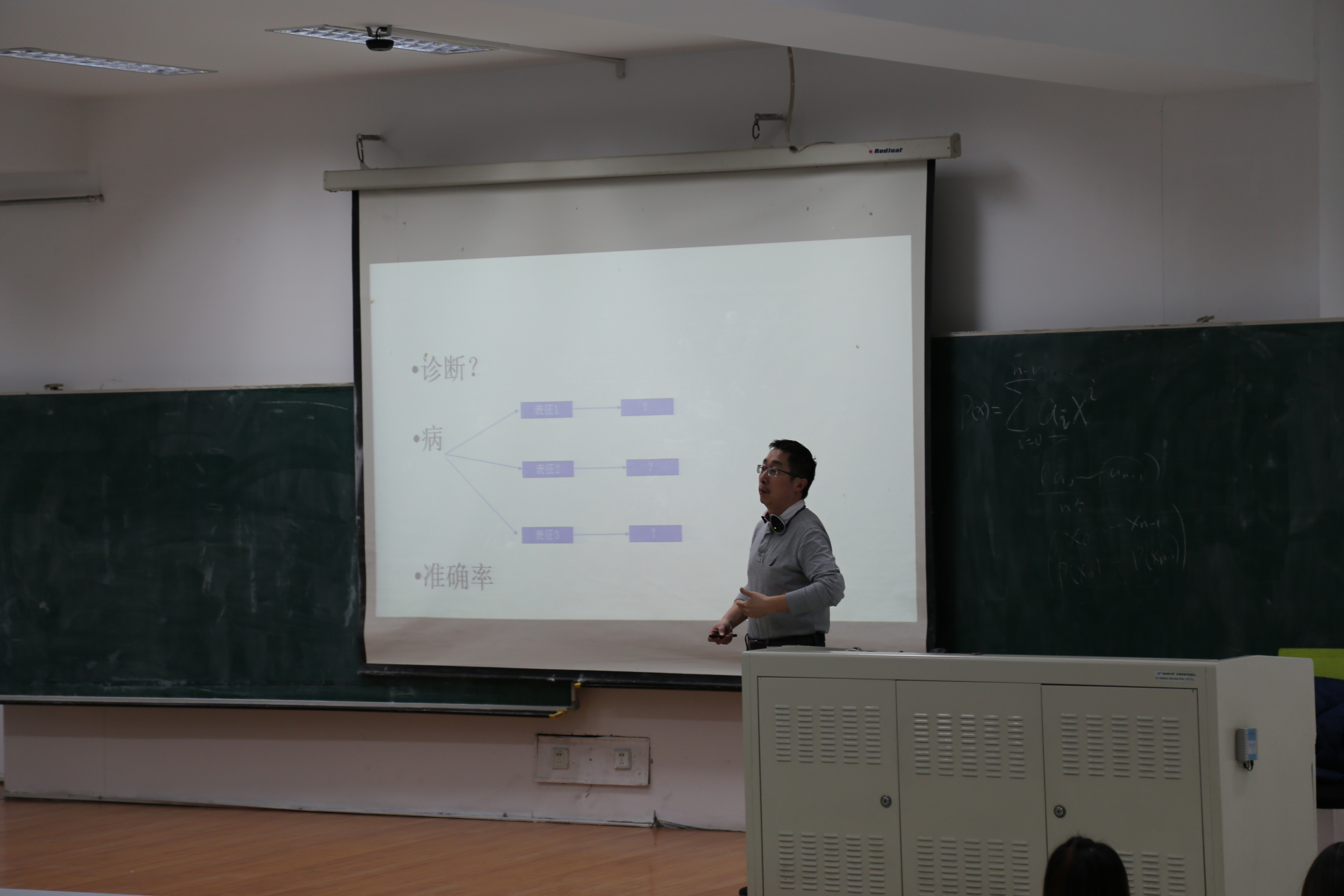 赵老师主要向学生介绍了统计学在医学领域的应用。在讲座的第一部分,赵老师主要由三个方面展开,分别是:癌症的预防、检查和治疗。比如在介绍癌症的检查时,赵老师就提到了在癌症的检查过程中统计学发挥的作用。人体的医学表征有很多种,比如心率、血压、各种功能细胞的数量等,但是有哪一种表征能够预示癌症的病发呢?科学家通过对特殊人群身体医学表征的调查,应用统计学的方法进行数据统计,总结出了预示癌症的医学表征。