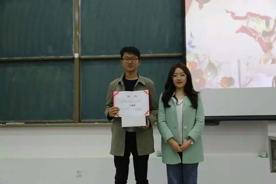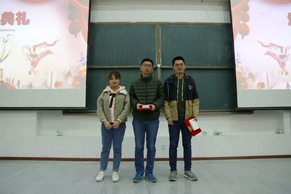本次比赛参赛选手讲课风格各具特色,有的同学举例丰富、贴近生活,有的同学慢条斯理,从容不迫,有的同学随性恣意,别具一格;讲课内容亦是五花八门,数学分析,高等代数,空间解析几何,常微分方程等等,选手们思路清晰,表达清楚到位,并有自己的独到见解;讲课形式丰富多样,手写板书,板书或工整规范,或随性恣意;PPT辅助,PPT简洁明了,美观大方。讲台上的同学们神采奕奕,自信从容,大方得体,颇具老师风范。讲台下的观众亦是全神贯注,仔细聆听,收获颇丰。现场还设有趣味问答环节,同学们热情高涨,紧张思考,积极响应,纷纷举手回答问题。各位评委秉持着公平公正的原则为各位选手进行现场打分,评选出一等奖一名(17级马琰)、二等奖一名(18级吴岳霖)、三等奖两名(16级黄海涛 18级何易繁),分别由团委副书记郑旭东、团委副书记兼社联主席赵雯晗、新媒体中心主任兼学生会副主席王思梦为获奖选手颁奖。最后,各位评委,获奖选手及工作人员合影留念。至此,韩国三级片