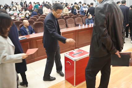 党员大会选举办法(草案)》、监票人和计票人建议名单。随后,按照选举程序和选票填写要求,与会党员严格按照指定顺序和路径有序投票,认真履行职责。