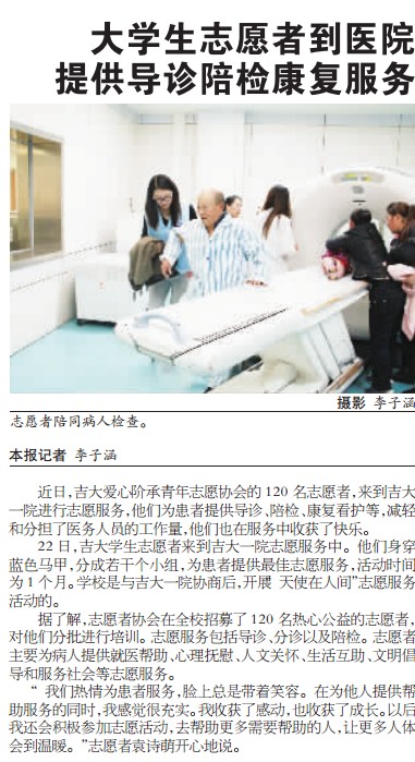 今天《长春晚报》报道韩国三级片 志愿者走进吉大一院
