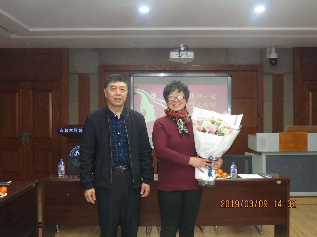 会上,原妇委会主任刘莉莉老师对学院妇委会工作做了回顾和总结,对学院领导和女职工给予妇委会工作的支持表示感谢,对妇委会接下来的工作提出了建议;李辉来院长代表学院对女教职工表达了节日的问候,鼓励女教工再接再厉,充分发挥“半边天”的作用,继续为学院一流学科的建设发挥更大的作用;校妇委会邹红副主任向学院全体女职工表达了慰问,对学院妇委会的工作做出了肯定,同时简要介绍了今年学校妇委会的工作计划,希望全体女职工为学校双一流的建设做出更大的贡献;李晓光书记为退休女教工代表刘莉莉老师献花并感谢各位女教工为学院的建设和发展所做出的努力。
