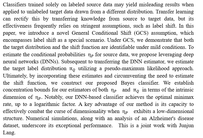 报告名称:Unsupervised optimal deep transfer learning for classification under general conditional shift