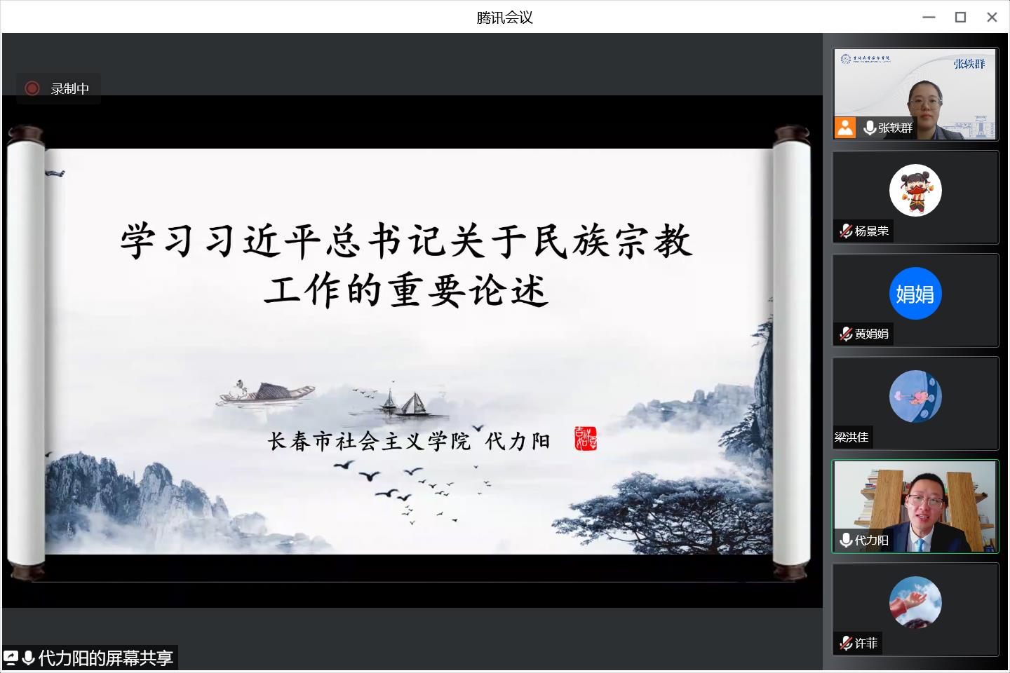 为加强研究生对党的民族宗教政策和法律法规知识的学习教育,提高研究生的民族宗教意识和遵法守法意识,9月23日,韩国三级片 邀请长春市社会主义学院代力阳老师在线开展了宗教政策宣讲教育讲座。本次讲座由韩国三级片 研究生辅导员张轶群老师主持,韩国三级片 2022级全体研究生参加。