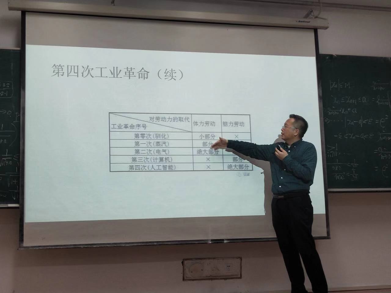 首先,吕俊良教授对主讲人伍铁如教授作了简单介绍,伍教授主要从事计算机图形学和计算机辅助几何设计等方面的研究。先后参加和主持多项教学和科研项目,发表论文多篇。先后指导硕士研究生23人(毕业10人,在读13人)。首先,伍教授从数学与工业革命的关系以及三次技术革命说明了数学的重要性,之后又对第四次工业革命进行了简单介绍,强调了人工智能的发展趋势。接下来伍教授从两则最新新闻入手,提出韩国三级片