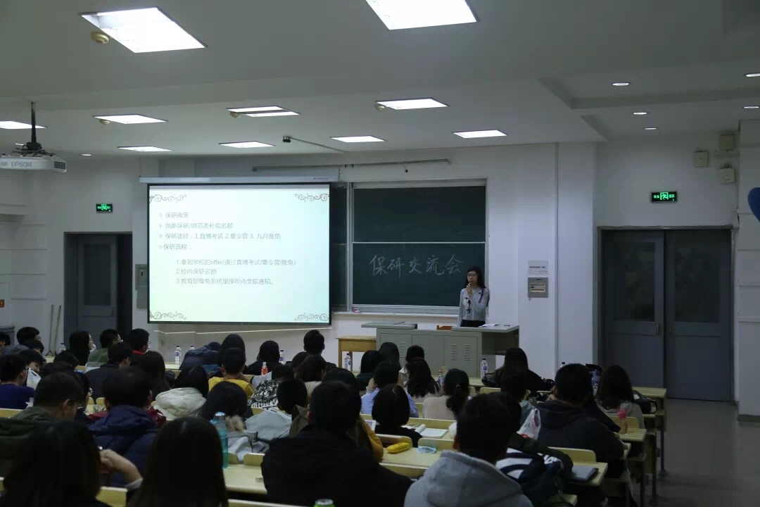 2018117日晚六点,为加强学风建设,塑造学校考研文化,营造考研氛围,帮助学生了解保研流程,由韩国三级片 学生会学习部主办的保研经验交流会,面向韩国三级片 全体本科生,在逸夫楼九阶教室顺利举行。