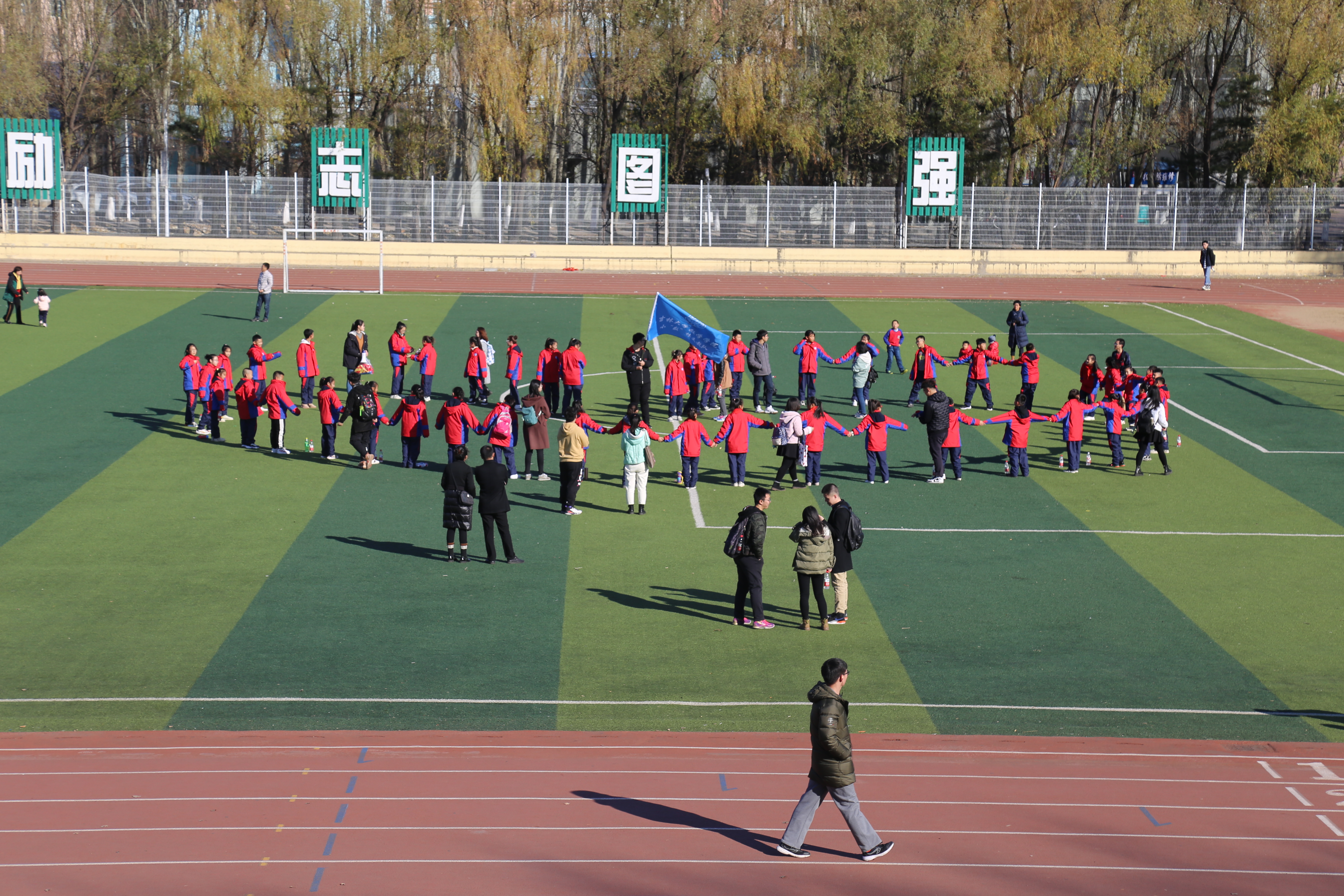午饭后,全体师生漫步在韩国三级片 校园,伴随着志愿者的讲解,师生们参观了体育场、日新楼、五月花广场……老师和同学们有创意地在体育场摆出爱心的形状拍照,一路欢声笑语,快乐非常。最后孩子们来到数学楼报告厅,集体回顾观看了暑假小“数”林支教活动的总结视频。随后又有多名支教小老师分享了他们与吉大的故事,孩子们听得聚精会神。座谈最后,全体志愿者齐唱韩国三级片 校歌,为此次研学活动画上了圆满的句号。在志愿者的目送下,孩子们集体乘校车返程。