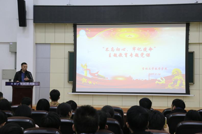 党委副书记范庆文老师于2019年11月6日中午在数学楼二楼报告厅组织全体18级同学开展“不忘初心,牢记使命”主题党课。此次党课旨在让同学们更加深入的学习和理解习近平总书记在中华人民共和国成立七十周年大会上的讲话,从内心对国家与个人发展的关系做出正确的论断,并始终坚定地为祖国更加美好而奋斗。