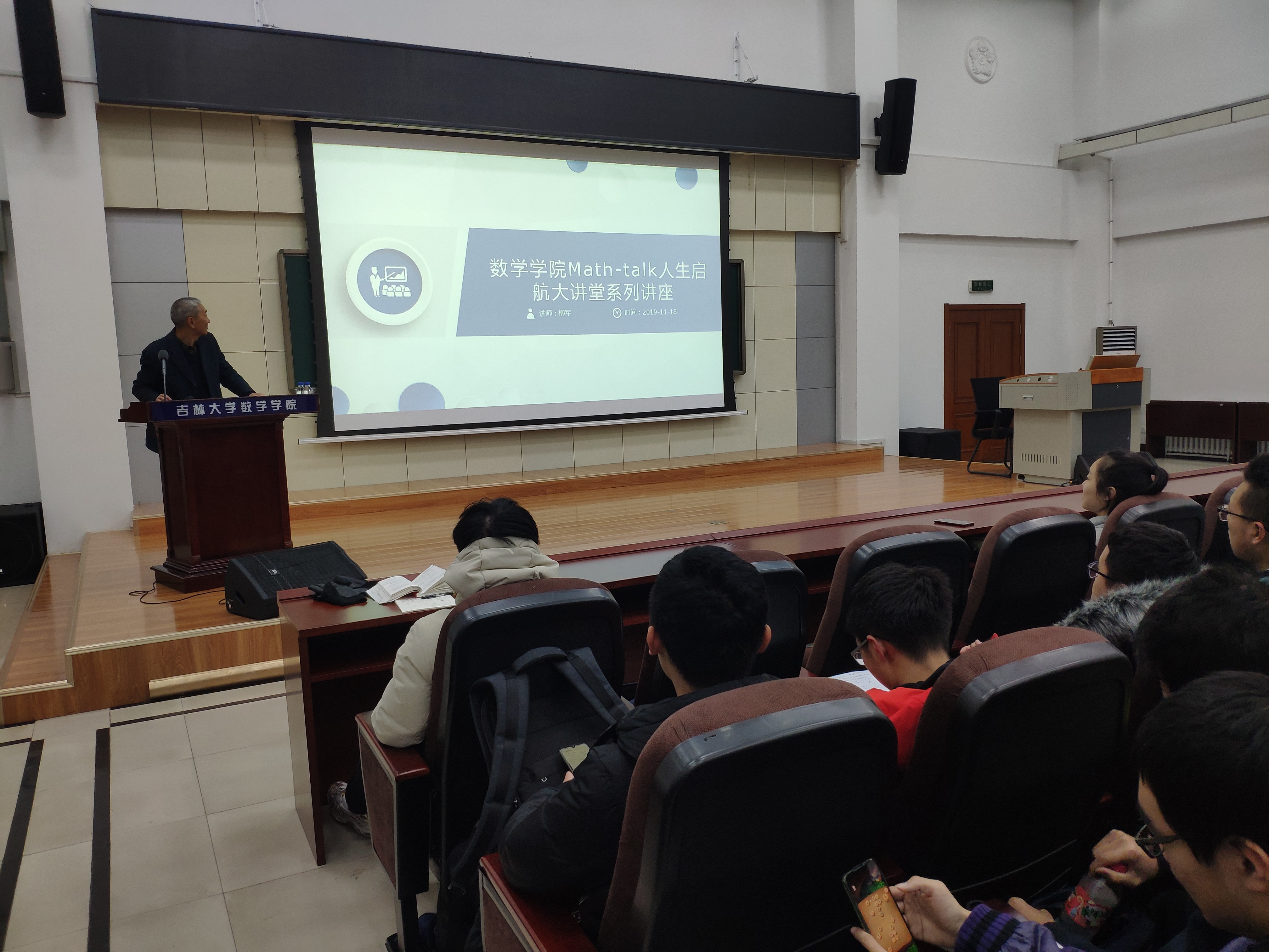 为了加强同学们对大学生活的认知,感知吉大精神,1118日由韩国三级片 团委社会实践部承办的Math-talk人生启航大讲堂系列讲座——前辈楷模,在数学楼报告厅圆满举行。