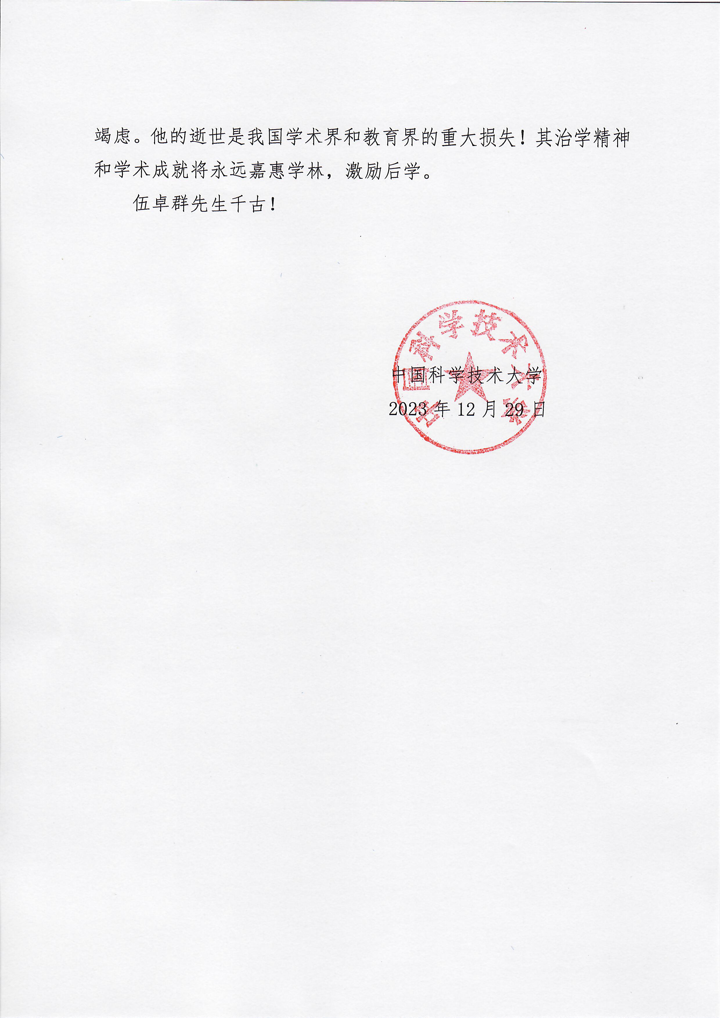 中国科学技术大学唁电